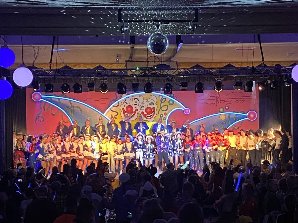 Zum Finale der Gala-Kappensitzung schmetterten die Wambachlerchen – unterstützt von den 181 Aktiven – die Vereinshymne „Blau-weiße Sterne stehn„. Prinzessin Anne-Kathrin und Leonie Göbel besangen anschließend „Den schönsten Fleck im Westerwald“, bevor sich die Aktiven zum Eingangslied „Nie mehr Fastnacht ohne euch“ von der Bühne verabschiedeten. Ein würdiger Abschluss eines fantastischen Abends!